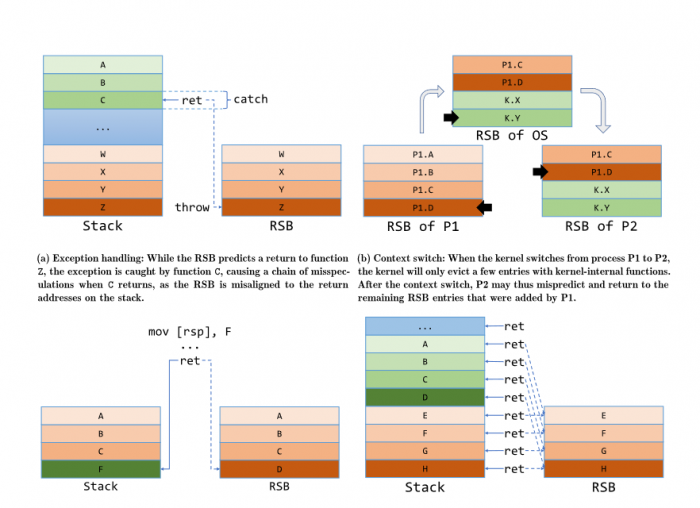 德国 Saarland 大学的两名研究人员公布论文《ret2spec: Speculative Execution Using Return Stack Buffers》(PDF),披露英特尔处理器的新漏洞“逆 spectre 攻击”,允许攻击者未经授权读取数据。漏洞是名叫“运行时优化返回地址”的 CPU 预测导致的。