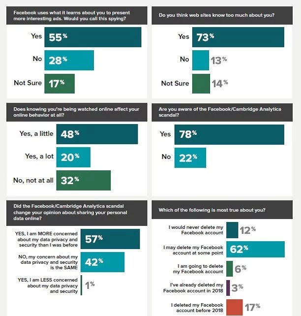 Janrain在2018年4月调查了1000多名美国成年消费者对数据隐私问题的态度。结果表明Cambridge Analytica违规确实成了消费者对数据隐私感受的重大转折点。