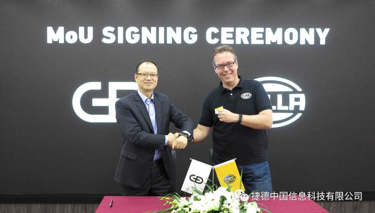 2017年4月20日,上海——第十七届上海国际汽车工业展览会上,全球顶级汽车照明及电子产品领域专家海拉亮相展会,并与移动支付领域的专家捷德公司签署合作备忘录,宣布在智能可穿戴“汽车手环”产品及解决方案领域的合作。双方的合作产品——“汽车手环”也在海拉展位上得到应用演示。