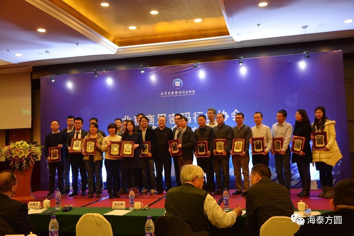 近日,“北京商用密码行业协会2016年度年会”在北京隆重举行,北京商用密码行业协会会长郭宝安、中科院院士倪光南、北京市密码管理局局长许博春等领导及专家出席并讲话。会议做了2016年度工作总结及2017年度工作规划,还颁发了协会各项荣誉奖项,并倡导商密企业签署了“北京商用密码行业协会推进商密应用自律公约”。公司CTO David荣获“首都商密先锋”奖项,专家Mario荣获“突出贡献奖”。