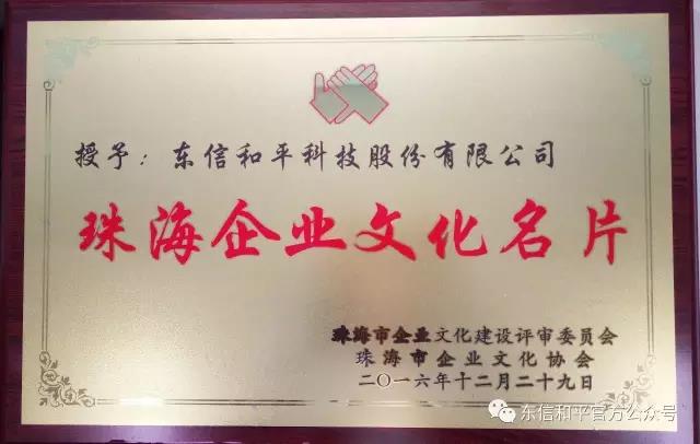 东信和平获评“珠海市企业文化名片”荣誉称号