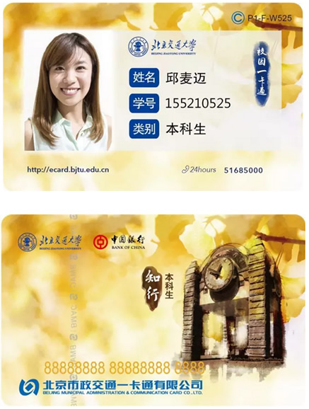 北京交通大学“一卡通学生卡”不仅可以用于交大校园用餐、机房上网、图书馆借阅、校内结账、宿舍门禁、洗澡、圈存等,还可作为交通卡直接享受学生乘坐公交2.5折优惠,并可在支持市政交通一卡通的地方刷卡消费,如超市、便利店等地,真正实现了一卡联通校园内外。
