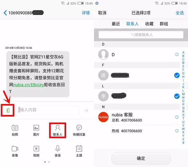 有人问你要一个朋友的联系号码,你还要回到桌面打开联系人,然后找到他,复制...那你就out了!点短信输入框前面的附件按钮就可以直接选择发送啦。当然还有图片、语音、主题、幻灯片等等。