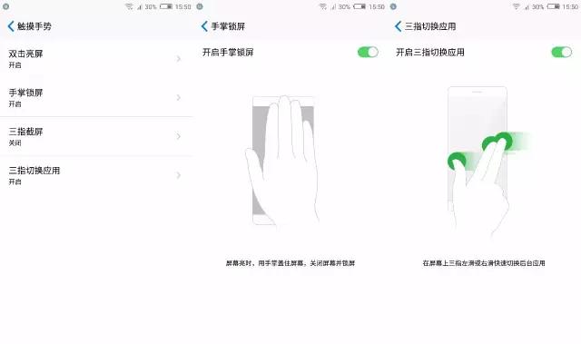 双击亮屏、手掌锁屏、三指截屏、三指切换应用,牛仔们赶快去试试。