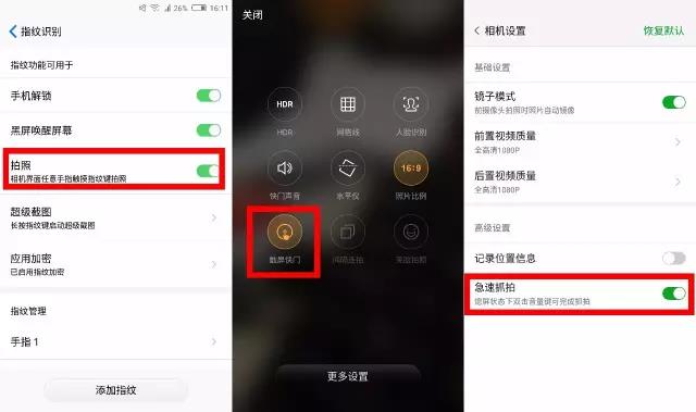 你也许知道不少拍照时的便捷操作方式,什么?你没用过?快捷不等于偷懒,今天就来学点新东西吧!可设置指纹拍照,触屏快门,熄屏状态下双击音量键可完成抓拍,当然来不及点击屏幕的时候,使用实体音量键也可以来拍摄,快捷可靠哦。