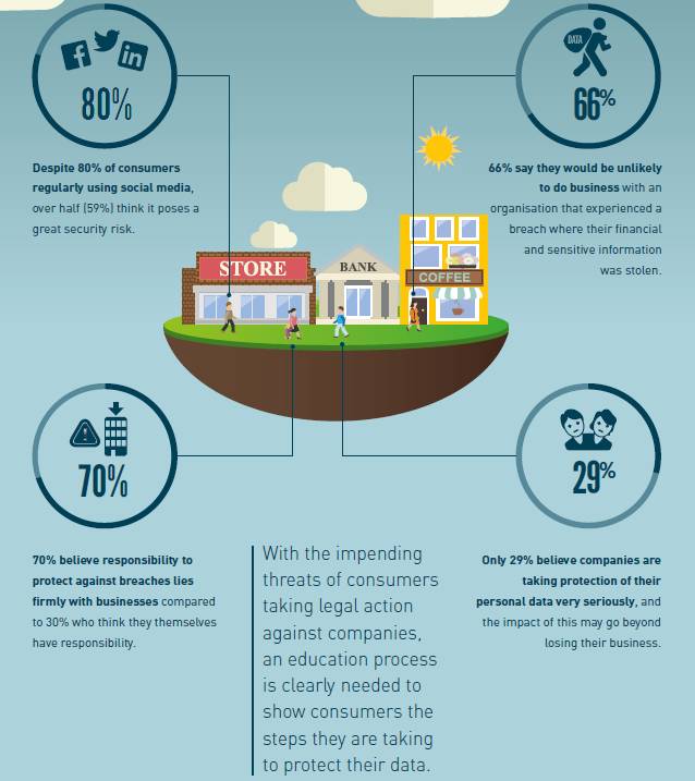 金雅拓数据保护首席技术官Jason Hart表示:“当涉及安全问题时,消费者已经明确地决定准备好承担风险,然而一旦出了问题,便将所有责任归咎于企业。现代消费者希望一切都是便利的,希望企业能提供便利的同时,还要确保其数据的安全。面对即将来临的消费者起诉企业的威胁,显然需要一个教育的过程来向消费者展示保护其数据的措施。在实行和教育如双因子身份验证和加密解决方案这样的高级协议时,应向消费者表明,其个人数据的保护正在被认真对待。”
