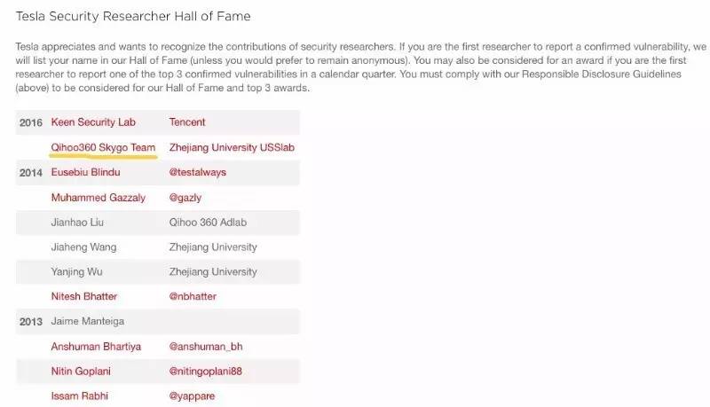 近日,特斯拉公布其2016年度“安全研究员名人堂”名单,360天行者团队(Skygo)和浙江大学联合提交的自动驾驶安全漏洞被确认并获得特斯拉致谢;同时360也因该漏洞的提交而第二次入选特斯拉名人堂,成为迄今为止全球唯一一家两次入选“名人堂”的安全厂商。