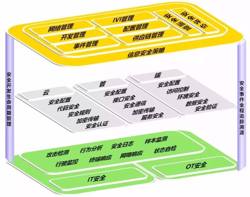 据悉,360天行者团队即将发布《智能网联汽车信息安全建设最佳实践》。该报告指出,智能汽车信息安全的生命周期管理应紧扣车厂生产流程,即从项目策划->工程设计->样机生产->测试评价->批量生产->产品交付,并对诸如终端安全防护、通信安全和接口安全、安全监控与分析、安全配置管理、数据安全防护、安全策略等关键安全措施进行设计与审查。