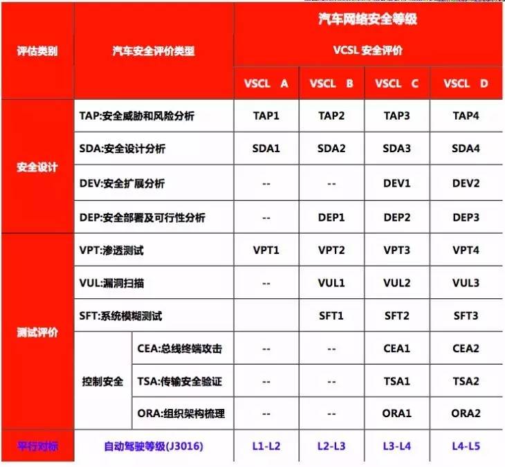 此外,在策划阶段,便需要根据所对应的自动驾驶等级,来确定信息安全目标,并结合研发设计车辆的功能性需求,定义汽车网络安全等级。