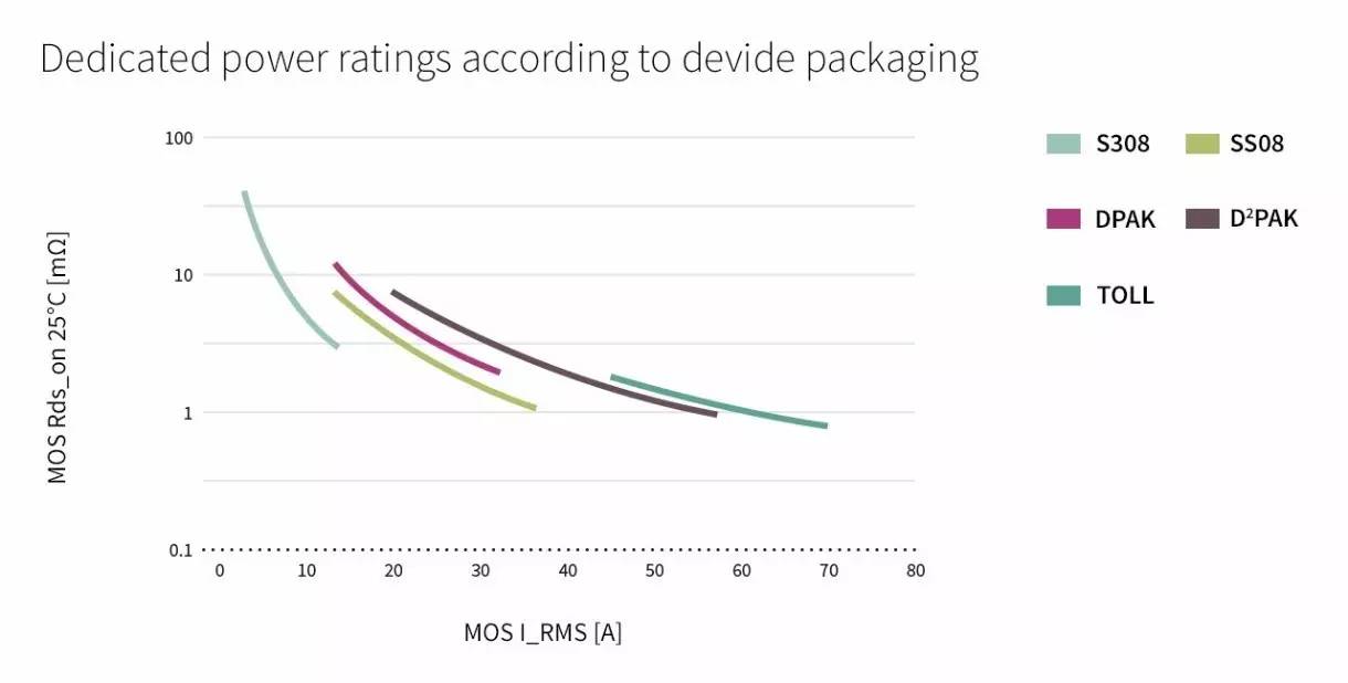 单靠芯片技术改进,不足以满足大功率应用中的更高电流要求。此外,这个应用场合也高度关注低封装电阻。总MOSFET电阻是芯片电阻(硅芯片)与封装电阻之和,受接合线或铜夹接合使用情况的影响。通过使用铜夹接合技术,可令封装电阻显著降低。相较于基于接合线的封装,基于铜夹接合的封装,封装电阻下降了4倍。