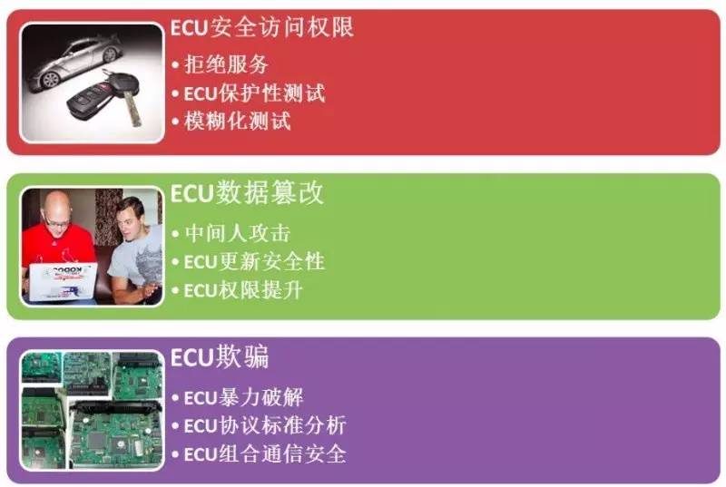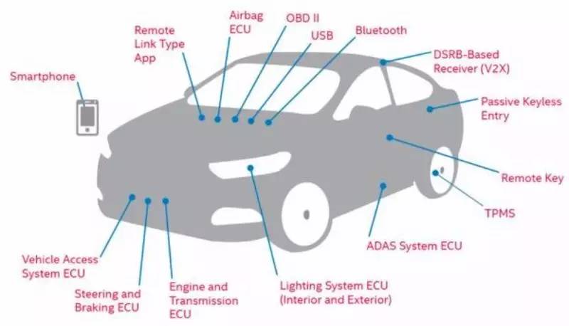 ECU(Electronic Control Unit)电子控制单元,是汽车专用微机控制器。一辆汽车通常有几十个甚至更多的电子控制器,其中许多被连成网络,相互进行通信。大多数汽车的电子控制模块具备一些防止其代码和操作遭到篡改的措施,这些措施的保护力度强弱不一。