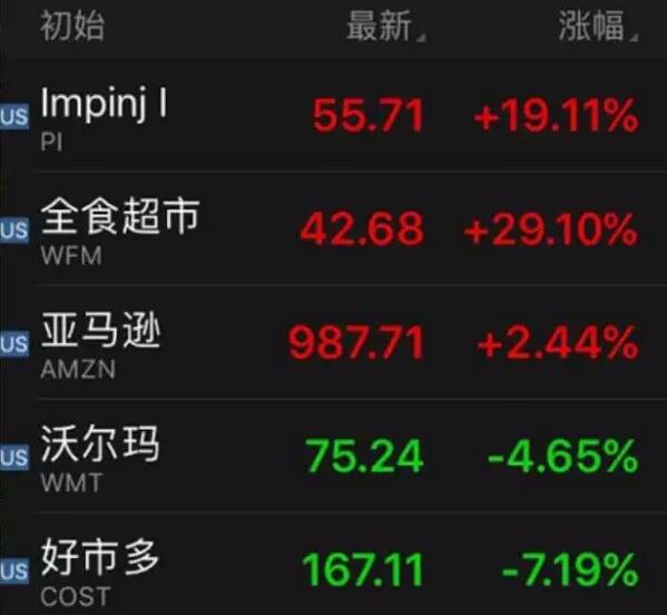 当亚马逊宣布137亿美金(或每股42美金)收购全食超市(Whole Foods)后,该超市股票上涨到42.68元,比收购价居然还高出了68美分 。这意味着投资者认为亚马逊会为了尽快达成交易,将继续上调收购价。而与此同时,一家知名度并不高的物联网芯片公司英频杰(Impinj)的股票也上涨了19%。原因是亚马逊“有可能”在其收购的超市里运用该公司的RFID芯片,对传统超市进行新零售改造。