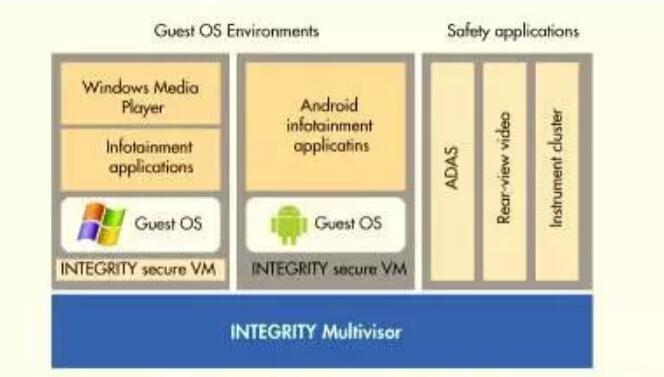 虚拟机管理程序是另一种常用工具,但不在车辆控制设置中。然而,由于多核解决方案的数量和复杂性,以及将安全和安全关键组件与IVI及非关键系统相结合的需求,这种变化也在明显改变着。面向汽车的虚拟机管理程序可从诸如Blackberry QNX Hypervisor,Wind River VxWorks,Green Hills Software INTEGRITY Multivisor 和Mentor Graphics的嵌入式管理程序等供应商获得。