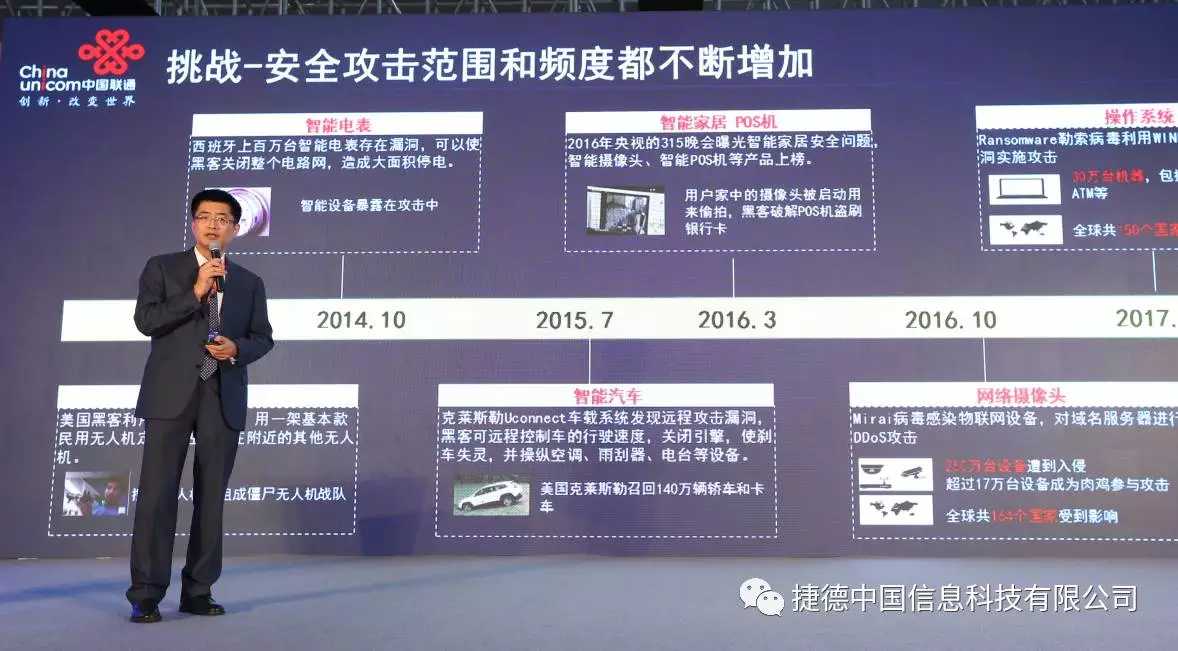 捷德作为“物联网安全及金融”专题论坛的承办方,与中国联通携手,为此次活动邀请到来自通信、金融、网络安全、物联网平台及应用安全的行业领袖,进行主题演讲和分享。