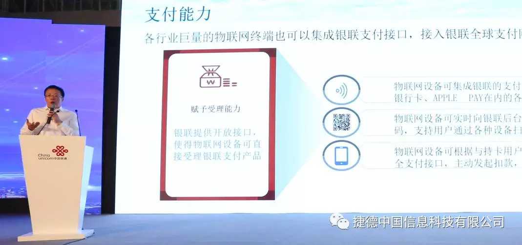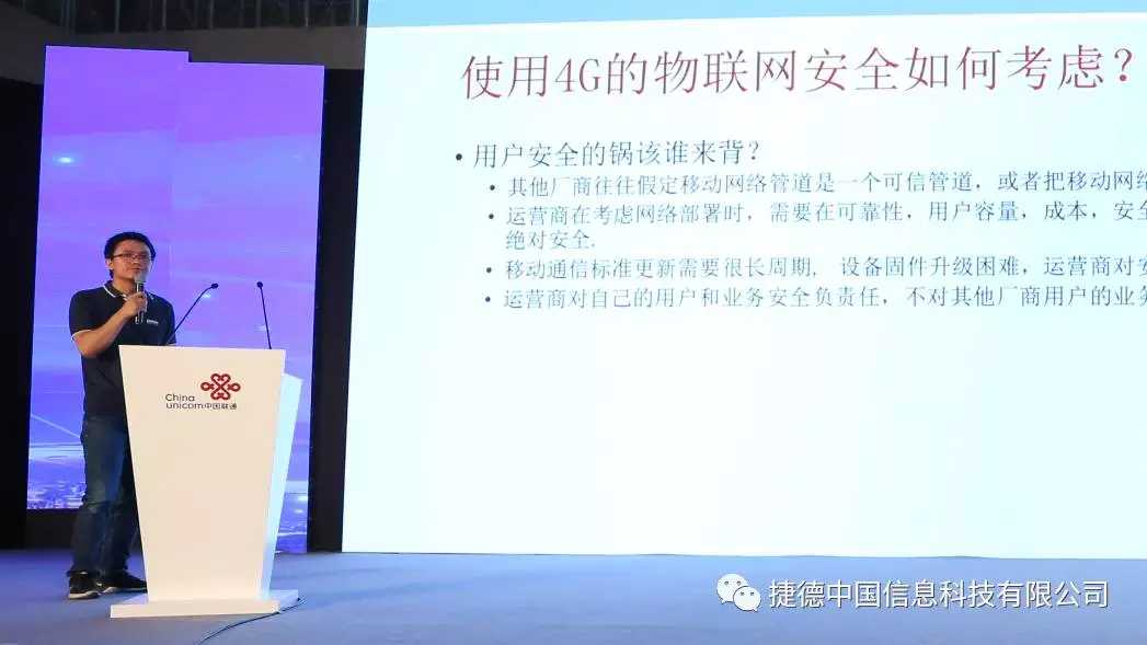 捷德集团副总裁、亚太区运营总监李春林参加了此次大会,并表示“捷德非常高兴能够同中国联通一道,为物联网的创新、合作、发展提供开放的交流平台。捷德作为物联网安全、移动支付安全等移动安全领域的专家,将坚持不懈地为推动中国物联网进步、提供客户可信赖的服务而努力。”