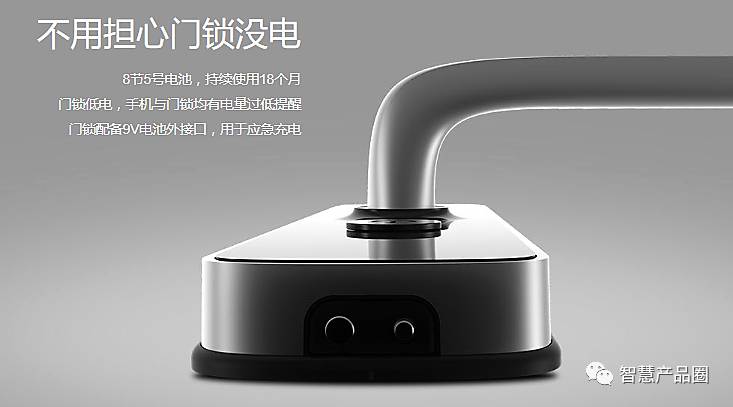 在产品设计上,考虑到智能门锁的供电问题。互联网智能门锁企业在设计时,通过安装传统电池来实现门锁的供电,可持续工作18个月;门锁电量低时,会在锁上和手机上进行提醒;并留出电池外接口或USB接口,通过电池或充电宝进行应急充电。