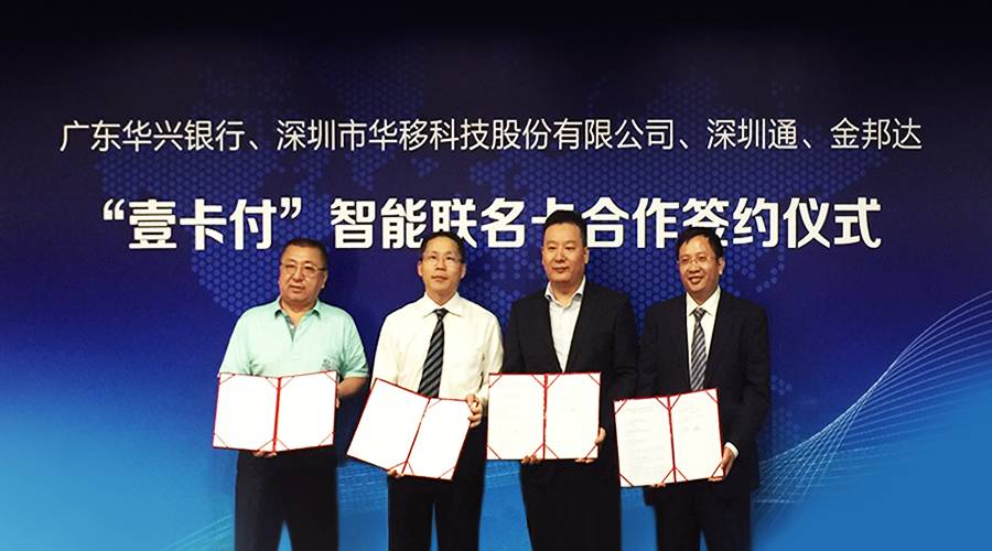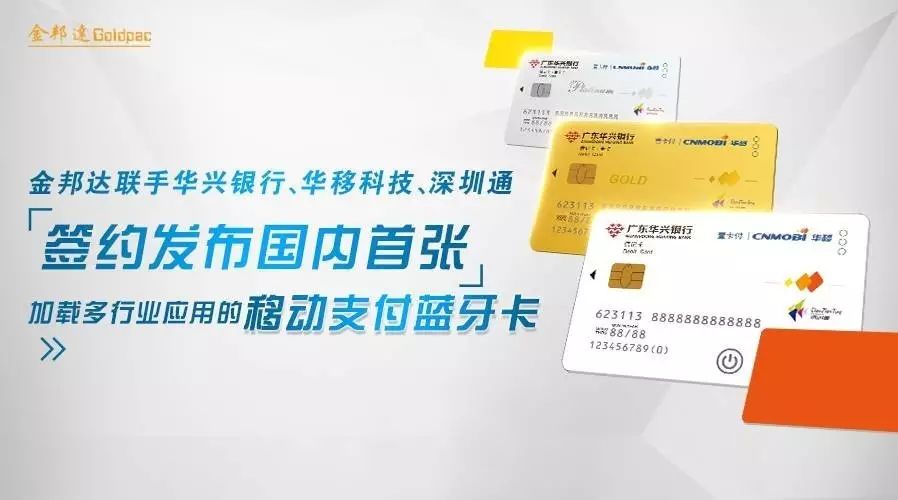 在支付解决方案行业位列中国第一、世界第四的金邦达宝嘉控股有限公司(「金邦达」或「集团」,股份代号:03315. HK)近日宣布,联手“互联网+金融”的先行者广东华兴银行、国内领先的金融领域移动开发与移动支付服务商深圳市华移科技股份有限公司,以及智慧交通的先行者深圳市深圳通有限公司,签约发布国内首张加载多行业应用的移动支付蓝牙卡——“‘壹卡付’智能联名卡”,充分体现了金邦达在移动金融领域的科技创新能力。