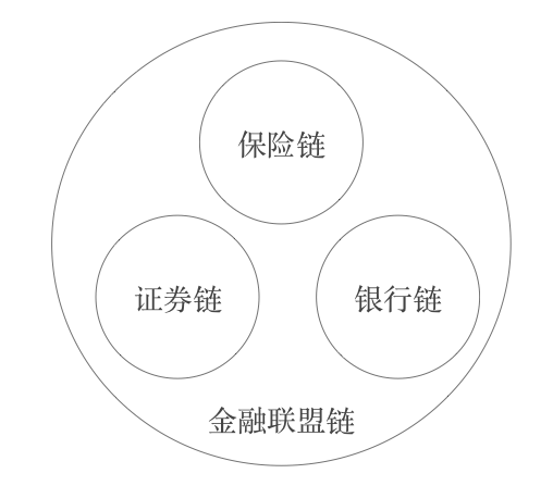 联盟链是个广泛的治理共同体。但依旧允许广泛共同体下存在多个不同的小集体,既是允许机构或行业做更深度的治理收敛,同时多个不同的小集体又共享联盟链的基础设施。如果实际操作中以一个治理收敛为一条链,那多链既是更符合实际的治理场景。例如下图所示: