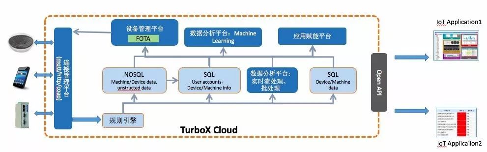 最新发布的TurboX Cloud主要由四个部分构成,分别是:设备管理平台、FOTA平台、应用赋能平台和数据分析平台。不同于一般的云平台,TurboX Cloud专门针对物联网垂直领域的应用进行了全面升级,面对不同的物联网开发和应用场景,四个平台都将发挥独特的作用,提供多种支持方案。
