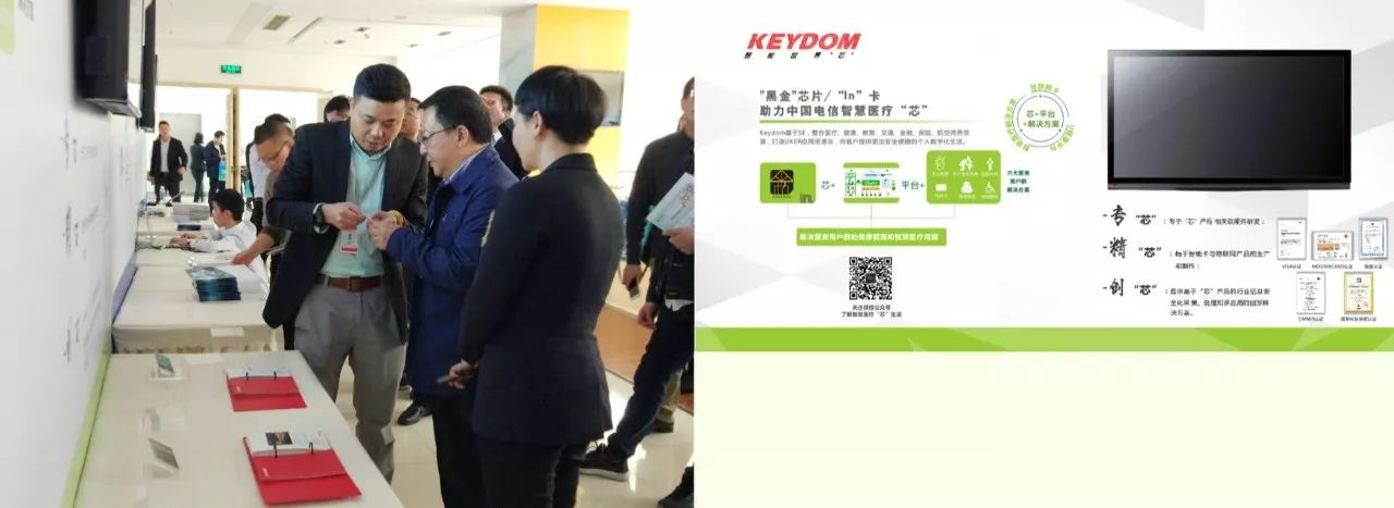 10月27日,由四川省卫生和计划生育委员会、成都市卫生和计划生育委员会指导,中国电信四川公司主办中国电信成都分公司承办的“拥抱健康•翼生平安——中国电信互联网+健康医疗行业交流大会(成都站)”在中国电信西部信息中心举行。来自政府、医院、合作伙伴相关领导、专家学者共聚一堂,围绕产业创新、跨界融合的“互联网+健康医疗”崭新形态,共同探讨、共同分享。四川精工伟达智能技术股份有限公司(以下简称KEYDOM)作为协办单位,携黑金芯和IN芯卡助力中国电信智慧医疗“芯”。
