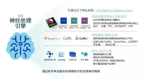 高通下一代骁龙旗舰处理器中,开放了六核DSP(数字信号处理器),并且在几代之前就已经将其使用到异构计算和神经网络的开发。2017年7月,高通已经这将SDK开放出来,命名为骁龙神经处理引擎。估计在高通的下一代产品上就会上马。