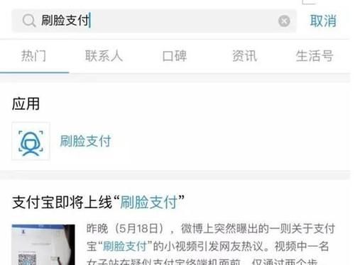 1、 点击支付宝,在搜索栏搜索“刷脸支付”,然后选择即可