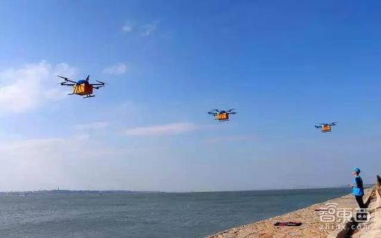菜鸟无人机组跨海运送快递
