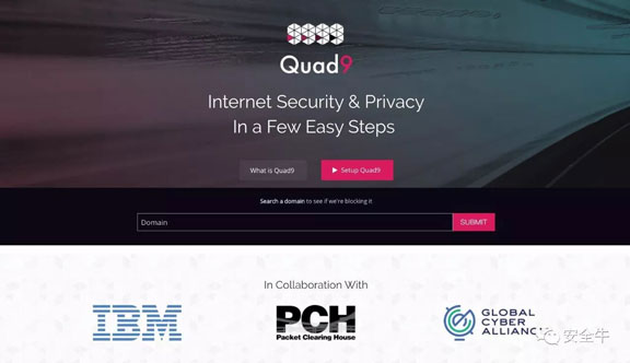 因为主DNS服务器的IP地址为9.9.9.9,该新服务被称为Quad9(“四九”)。该服务由IBM Security、Packet Clearing House (PCH)和全球网络联盟(GCA)联合发布,旨在为消费者和公司企业提供更好的在线安全与隐私。
