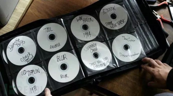 不过今天可不是来谈电视剧的,我们会讨论剧中使用的技术。随着黑客军团剧情的展开,Elliot对他周围的人(包括他自己)进行入侵和篡改,然后将所发现的信息存储在CD上。他经常会用一些经典乐队名来标注他们。