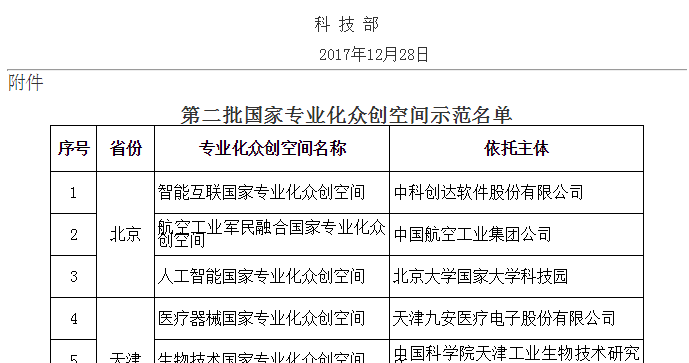 中科创达旗下安创空间入选国家专业化众创空间示范名单