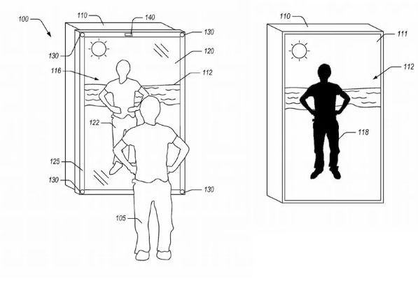 该专利将镜子描述为部分反射和部分透射,并使用显示器,照相机和投影仪的混合来创建混合图像。这种专利镜子通过扫描环境产生虚拟模型,然后识别用户的脸部和眼睛以确定哪些对象将被视为反射。一旦这个过程完成,虚拟的衣服和场景就通过镜子传递出来,创造出混合现实的效果。