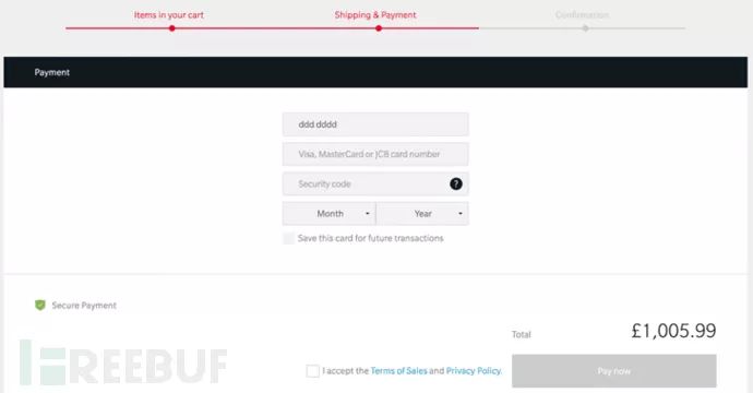Fidus写道:“虽然支付细节在提交表单后被发送给第三方提供商,但是在数据被加密之前,还有一个窗口可以让恶意代码抽取信用卡细节。