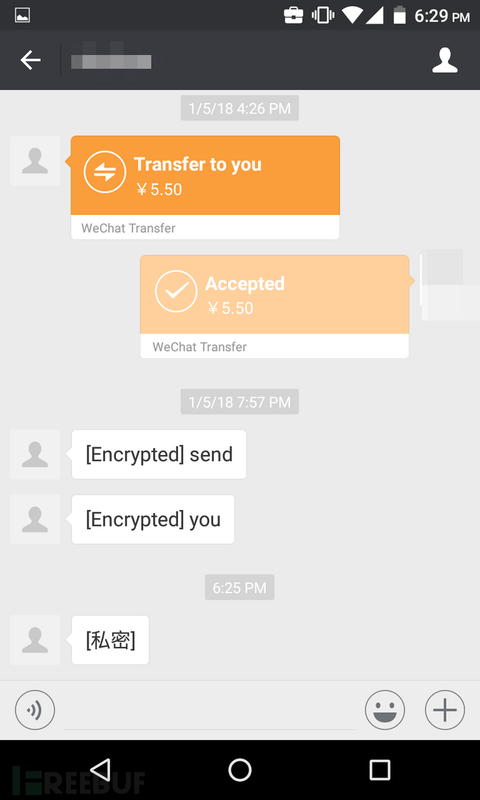 左图为发送方,右图为接收方,第三条消息为关闭Xposed插件的效果