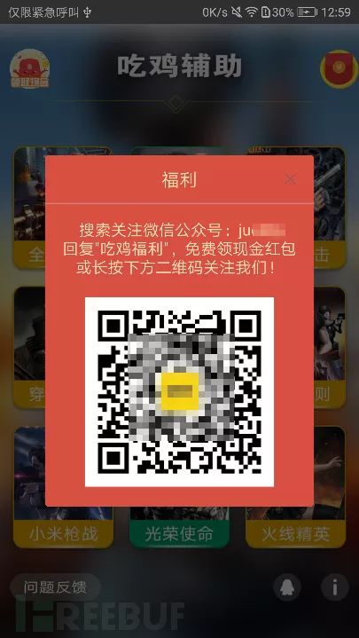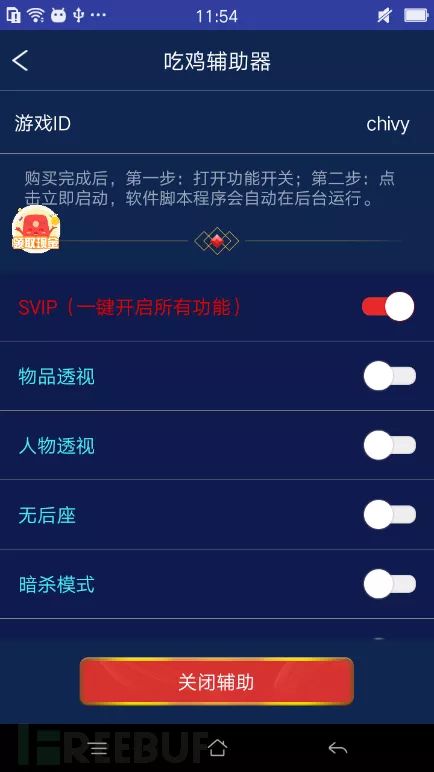 腾讯移动安全实验室APP威胁情报项目组发现一个吃鸡辅助器的欺诈样本,用户需支付一定金额开启外挂功能,但该样本本身并没有外挂功能。因涉及诈骗用户钱财,建议关注。