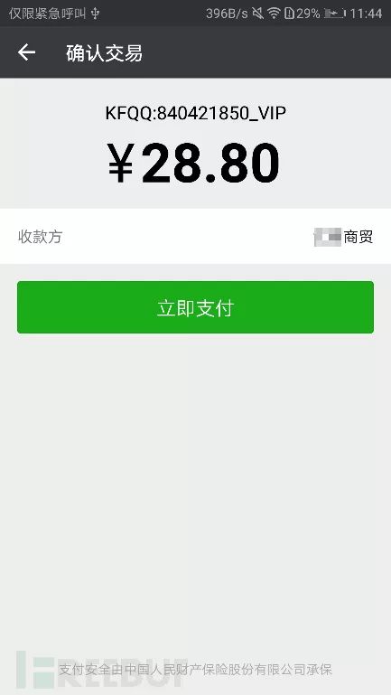 2. 解锁外挂功能需要付费,微信支付(根据反编译分析,云端还可配置使用支付宝付款,以及折扣信息),收款方为“**商贸”。