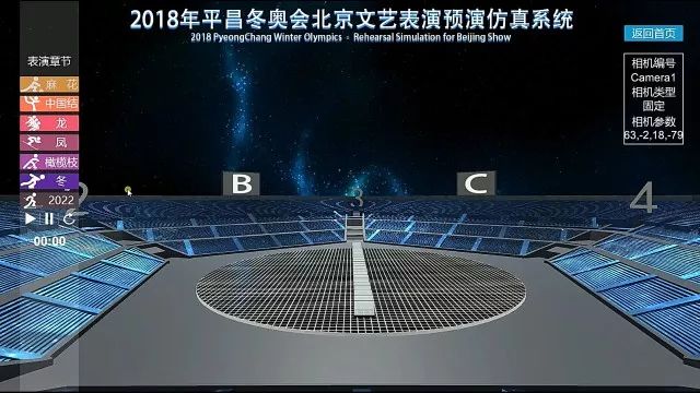 针对“北京8分钟”参演要素多、创意过程复杂、排练关联度高的特点,北理工虚拟视觉团队利用影视虚拟制作技术和数字表演与仿真技术,专门创新研发了文艺表演预演系统和训练彩排与数字验证系统。这两套系统能够根据表演创意方案,将整场文艺表演的过程全部仿真,较好地保证了前期创意设计与现场排练工作的顺利进行,得到了导演组和参加表演团队的一致好评。