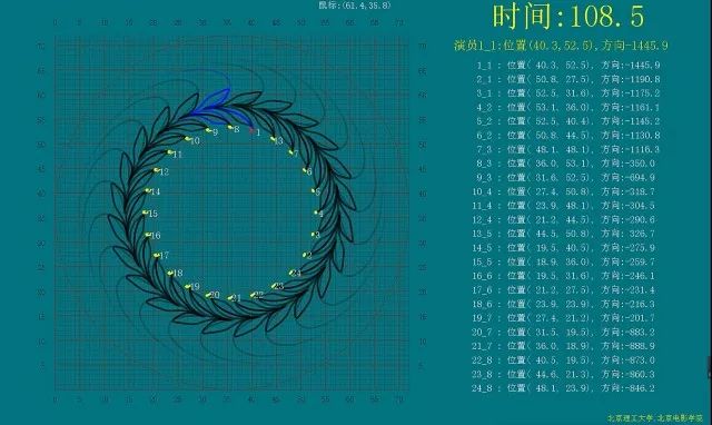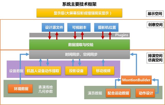 训练彩排与数字验证系统将创意数据转化为执行数据,指导表演要素进行排练,并保证数据在时间、空间上的一致性与准确性,同时将执行中修改的执行数据在表演要素中同步,帮助导演实时观察到演员和道具的队形状态以及演员的姿态,以便指导后续节目的编排,演员也能迅速直观地了解自身和理想运动轨迹的偏差并纠正,实时、快速地熟悉表演方案。