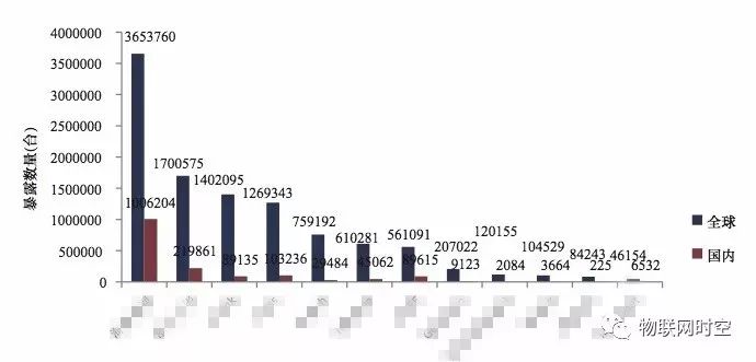 摄像头存在缺省密码和安全漏洞,而这些设备暴露在互联网上,就是造成蠕虫网络形成和视频隐私泄漏的直接诱因。下图是来自绿盟科技威胁情报中心的数据,统计了在网络上暴露的摄像头品牌和数量,其中就有缺省密码的设备。