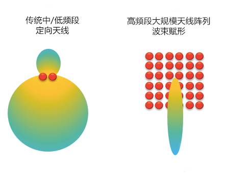 波束赋形是指大规模多天线系统可以控制每一个天线单元的发射(或接收)信号的相位和信号幅度,产生具有指向性的波束,消除来自四面八方的干扰,增强波束方向的信号。它可补偿无线传播损耗。