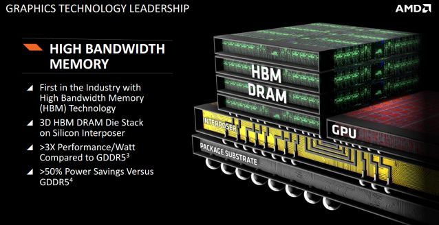 AMD在2015年发布的Fury系列显卡上,首次商用了第一代HBM技术,超高的带宽以及极低的占用面积彻底改变了当时的显卡设计,随后NVIDIA也在Tesla P100上采用了HBM 2 技术。