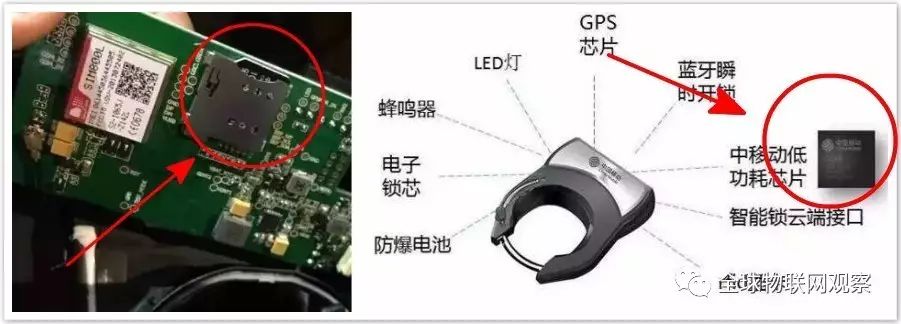 另外一个常用的应用就是我们在大街上看到的共享单车,它的GPS定位功能、扫描解锁功能都是通过物联网卡联网实现的。不过现在投放出来的多以插卡式为主,如左图。6月份,中国移动在 CES Asia 上展示了一款,基于内置贴片式物联网卡的芯片开发出的智能锁,实现了小体积、低成本、高稳定性。