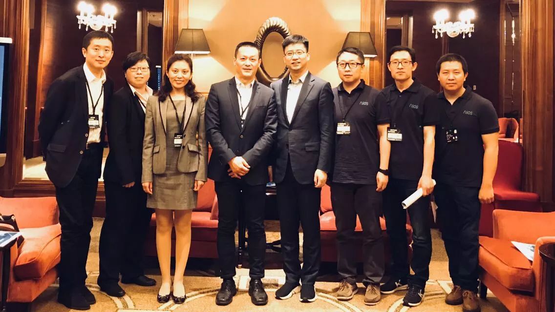 恩智浦大中华区总裁郑力(左四)与AliOS总裁胡晓明(右四)在双方的战略合作备忘录签署仪式上