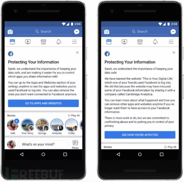 Facebook 计划在 4 月 9 日星期一通知所有受影响的用户,并在他们的 Facebook 时间表顶部显示通知消息。同时,Facebook 还计划发出另一条通知,提醒所有用户(不仅是受影响的 8700 万人)查看可访问其 Facebook 数据的应用,让用户删除他们不愿意使用的软件。