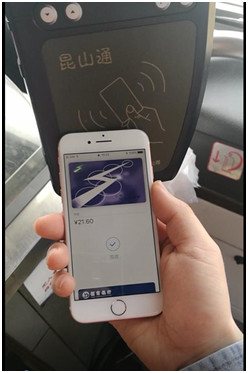图为上海交通卡Apple Pay在昆山刷卡成功