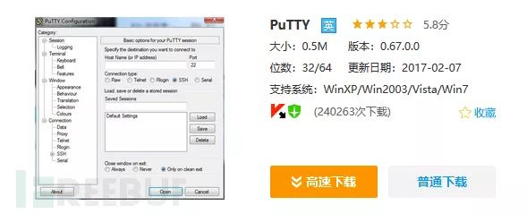 据悉,360、火绒,以及部分国外杀毒软件均会对百度版本的putty进行警报。
