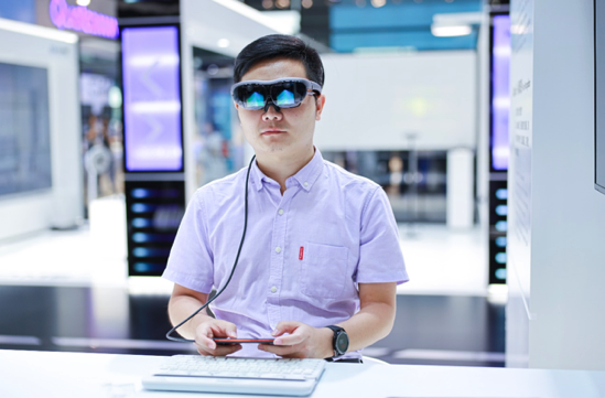 虚拟现实——AR眼镜展示区,全面展现5G时代数字化虚拟生活场景。其中,VIVO AR眼镜也在展会上首次亮相。该产品支持双屏异显和6DOF技术,在连接手机后,可以实现移动办公、AR游戏、3D高清视频等功能。以沉浸式的场景体验,令消费者感知到未来更高效、智慧的生活画面。