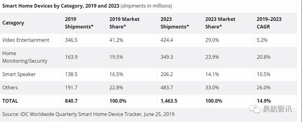 IDC估计,本年整年,全球智能家居装备出货量将达8.407亿台,而2023年出货量将增至14.6亿台。