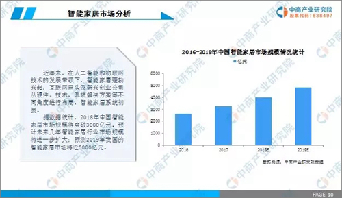 据数据统计,2018年中国智能家居市场规模将突破3000亿元。预计未来几年智能家居行业市场规模将进一步扩大;预测2019年我国的智能家居市场将近5000亿元。