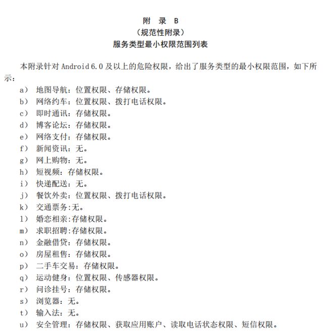服务类型的最小权限范围列表 图片来源:全国信息安全标准化技术委员会官网。