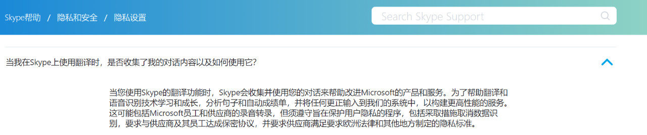 Skype服务条款中明确表示,用户的语音数据可能被微软员工或供应商记录或收集